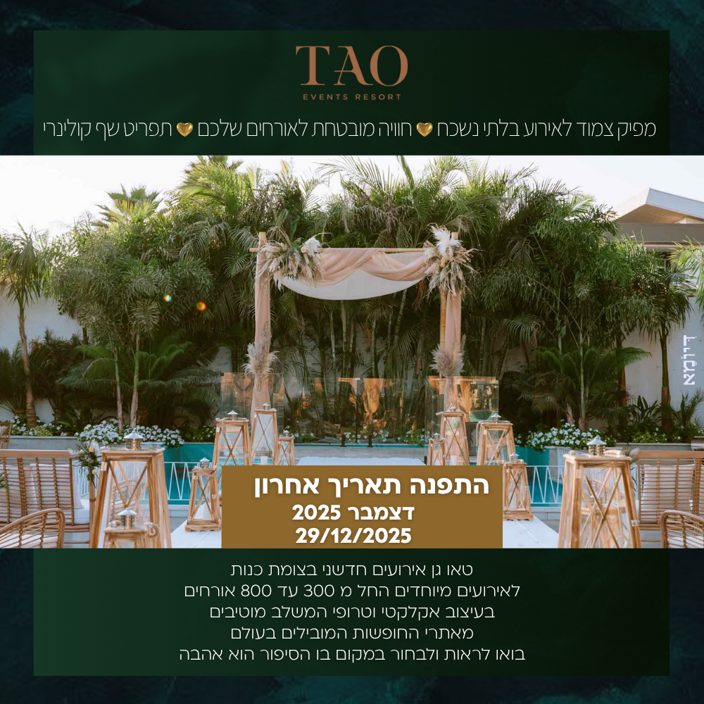 כאן איתנו, בריזורט האירועים TAO. עם חוויה עיצובית